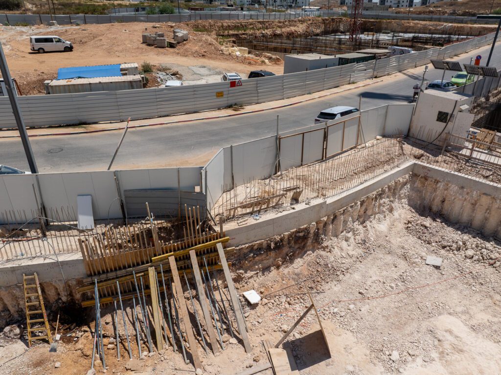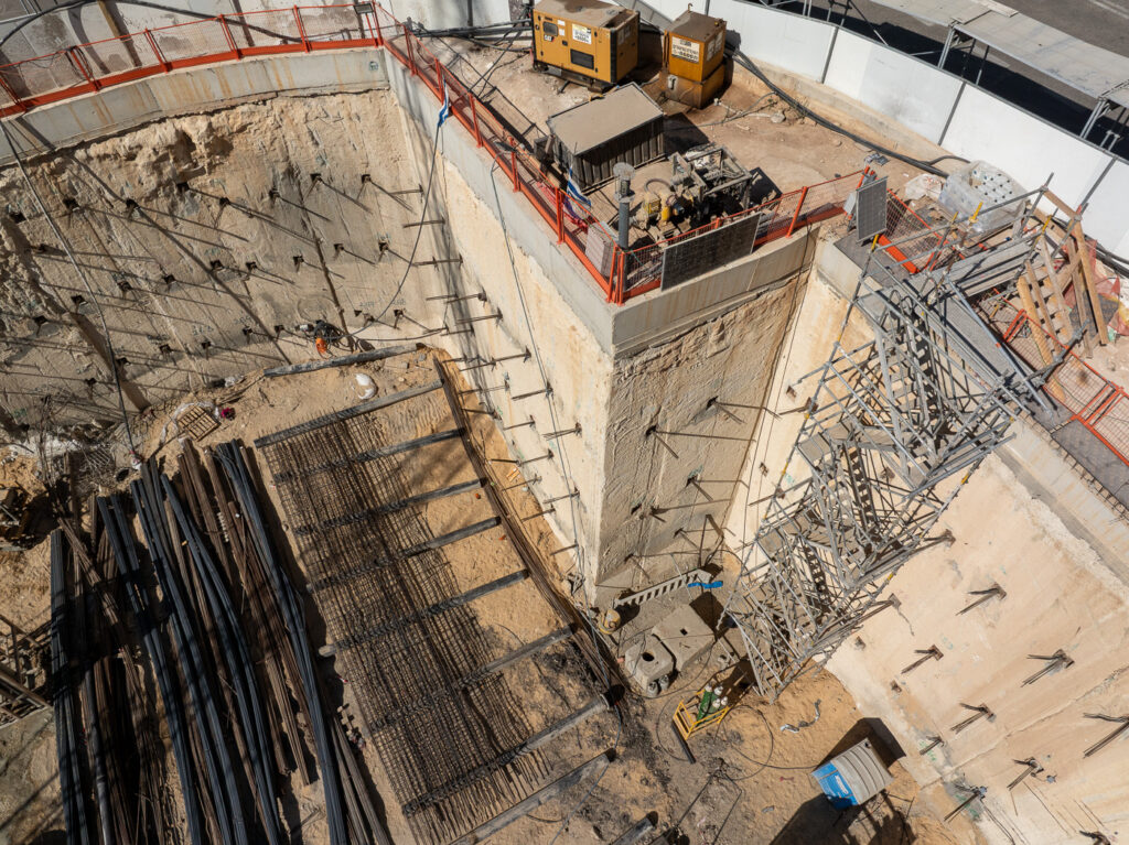 חתך הקרקע באזור מאופיין בסלע גירי קשה, ומעליו שכבת מילוי בעובי 1 מטר עד מטרים בודדים. החפירה נעשית עד עומק של כ-4 מטרים ונתמכת בקירות דיפון בשיטת מיקרופיילס, המבטיחה את יציבות הכבישים הגובלים במגרשים.